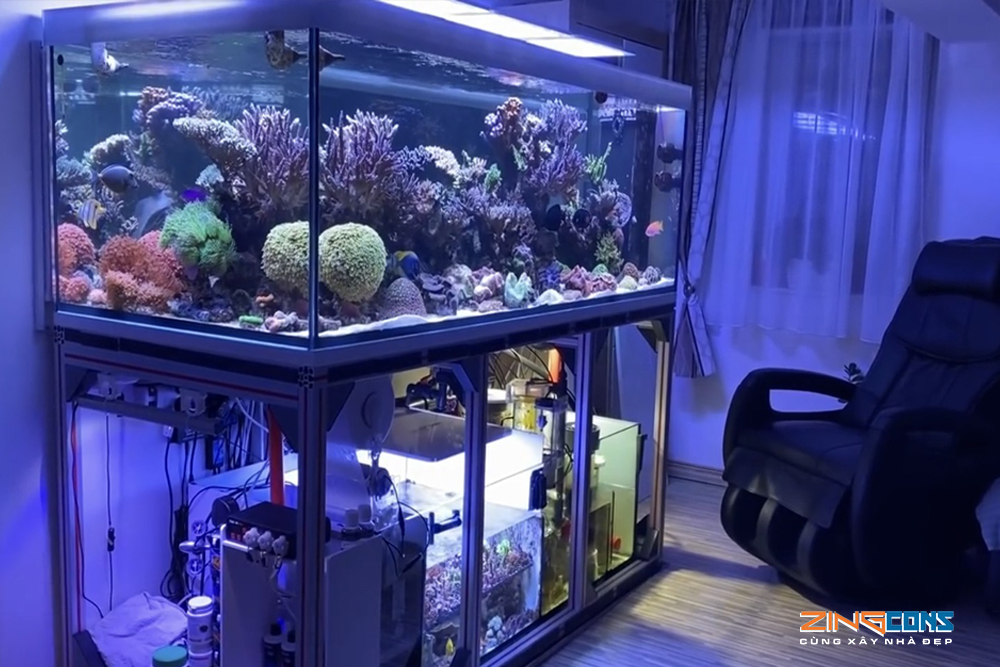 – Bể cá: Bể cá cảnh phong thủy là một trong những vật phong thủy tượng trưng cho hành Thủy. Các sinh vật sống dưới nước như tảo, rêu hay cá đều có thể giữ linh khí, vượng khí trong nhà, thay tẩy bớt đi những khí tức đang bị ô uế.